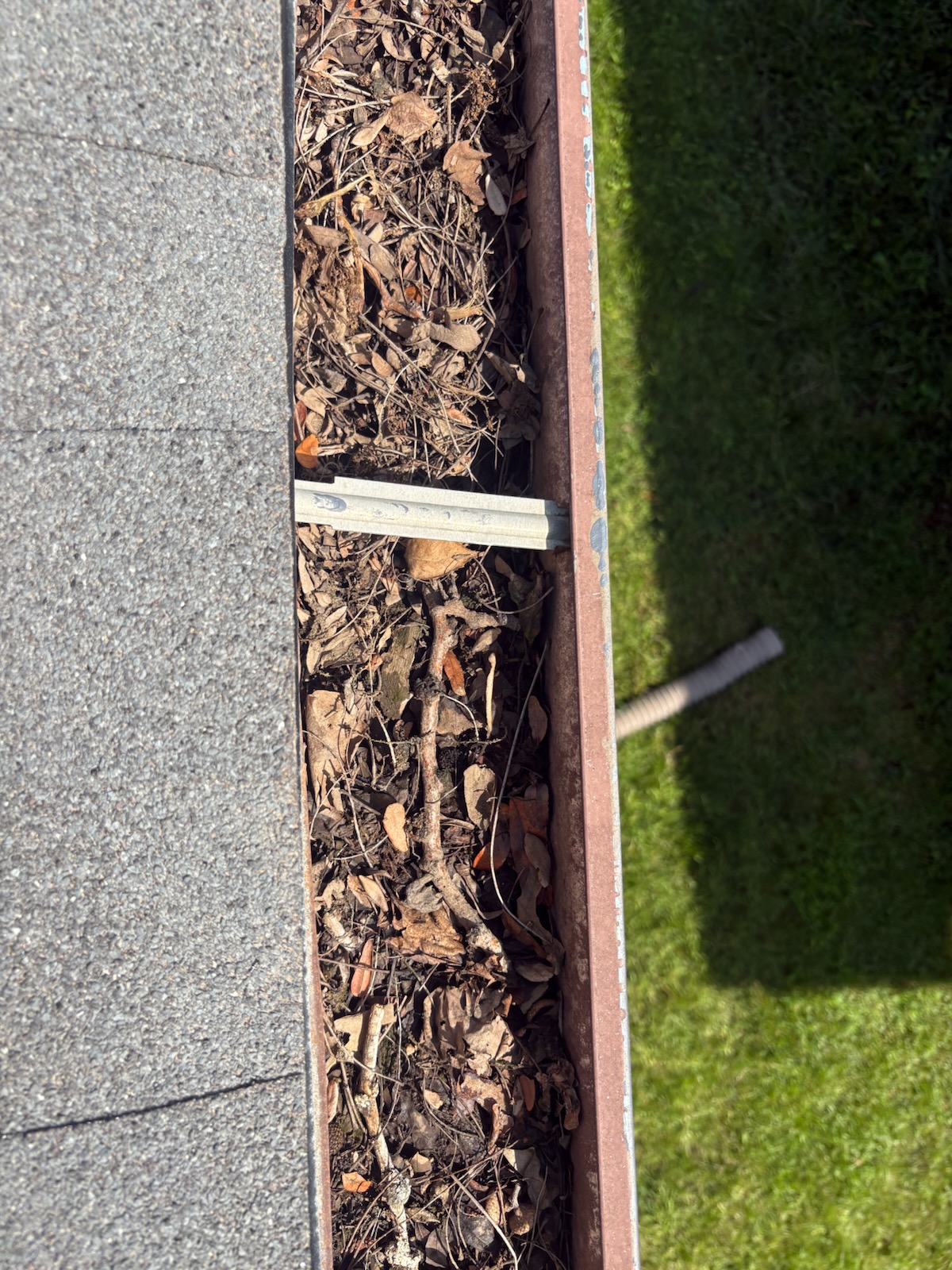 Starting with a hand scrape collection of large debris from overhead foliage, followed by a blowout of residual dirt, shingle grit, and completed with a washout leaving your gutter basins and downspouts flowing free and clear.
